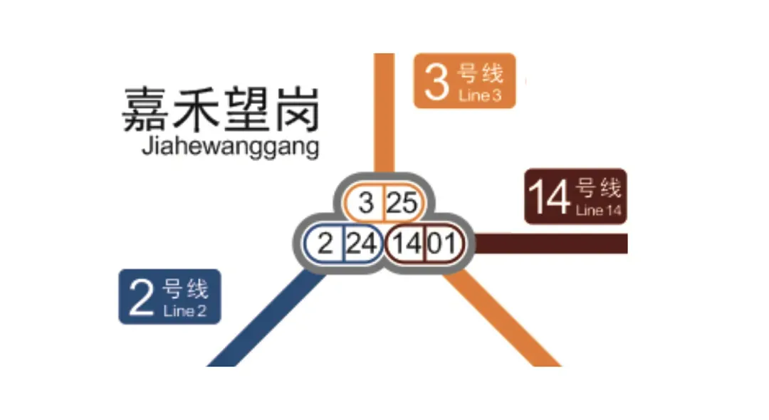 2、3号线前往14号线/14号线前往2、3号线的乘客,需要搭乘扶梯/楼梯前往站厅换乘。