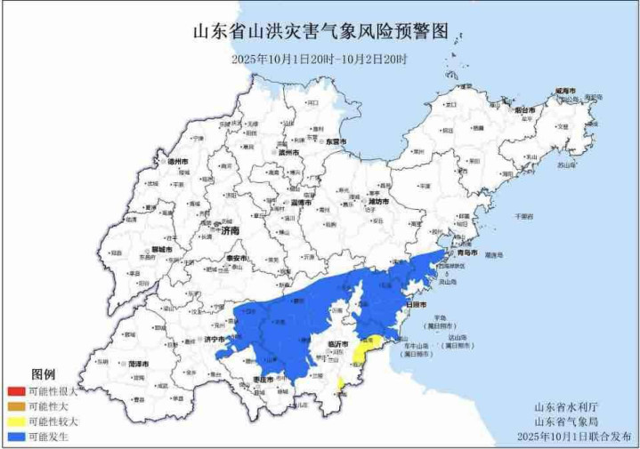 预计10月1日20时至10月2日20时金御网,临沂市局部地区发生山洪灾害的可能性较大(黄色预警),青岛、枣庄、潍坊、济宁、泰安、日照、临沂等市局部地区可能发生山洪灾害(蓝色预警)。